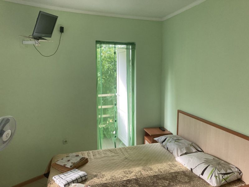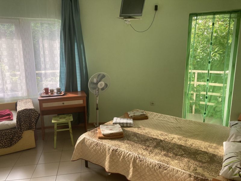 Номера вмещают от 2-х до 4-х гостей. Все они полностью укомплектованы мебелью, предусмотрены телевизоры, кондиционеры или вентиляторы. В номерах предусмотрены индивидуальные санузлы. Отдыхающие имеют возможность готовить собственные блюда на общей, полностью оснащенной кухне. Для комфортного отдыха гостей предусмотрены открытый бассейн и доступ к Wi-Fi. Расстояние до широкого песчано-галечного пляжа составляет 750 метров.