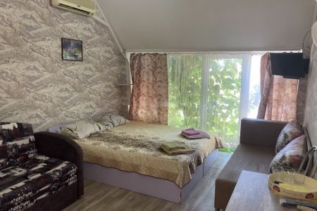Самолетом до аэропорта г. Симферополь, далее на автобусе №459-23 до остановки «Железнодорожные вокзал», далее на автобусе №420-08 до остановки Николаевка, далее 259 м до гостевого дома.